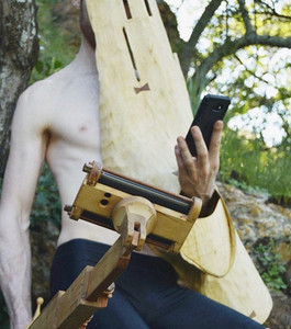 His interactive artworks made from everyday objects function as a new means to execute menial tasks, such as listening, seeing, smoking and taking a leak. His works explore the loss of culture and ritual in our mass produced consumerist society.