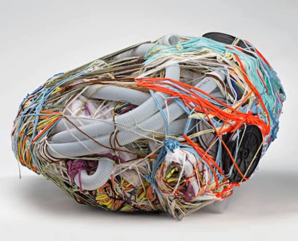 From then on she didn’t stop. She was constantly creating. Her process was erratic and instinctive. She would wrap thread and yarn around anything she could get her hands on; she appropriated magazines, chairs and even a bicycle wheel. It quickly became a source of communication for Judith, having been verbally and socially ‘blocked’ for most of her life.